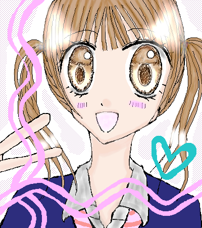 はる〜!! 笑佳ちゃんめっちゃ可愛いよ〜>< ピースとかほんと可愛いよv 瞳も細かくてすごいきれいだね!! 制服も上手いしvv 背景のトーンとかハートとかも素敵だよーv でわA
